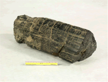【鑒定特征】 柱狀晶形,柱面有縱紋,橫斷面呈球面三角形,無(wú)解理,高硬度為特征。